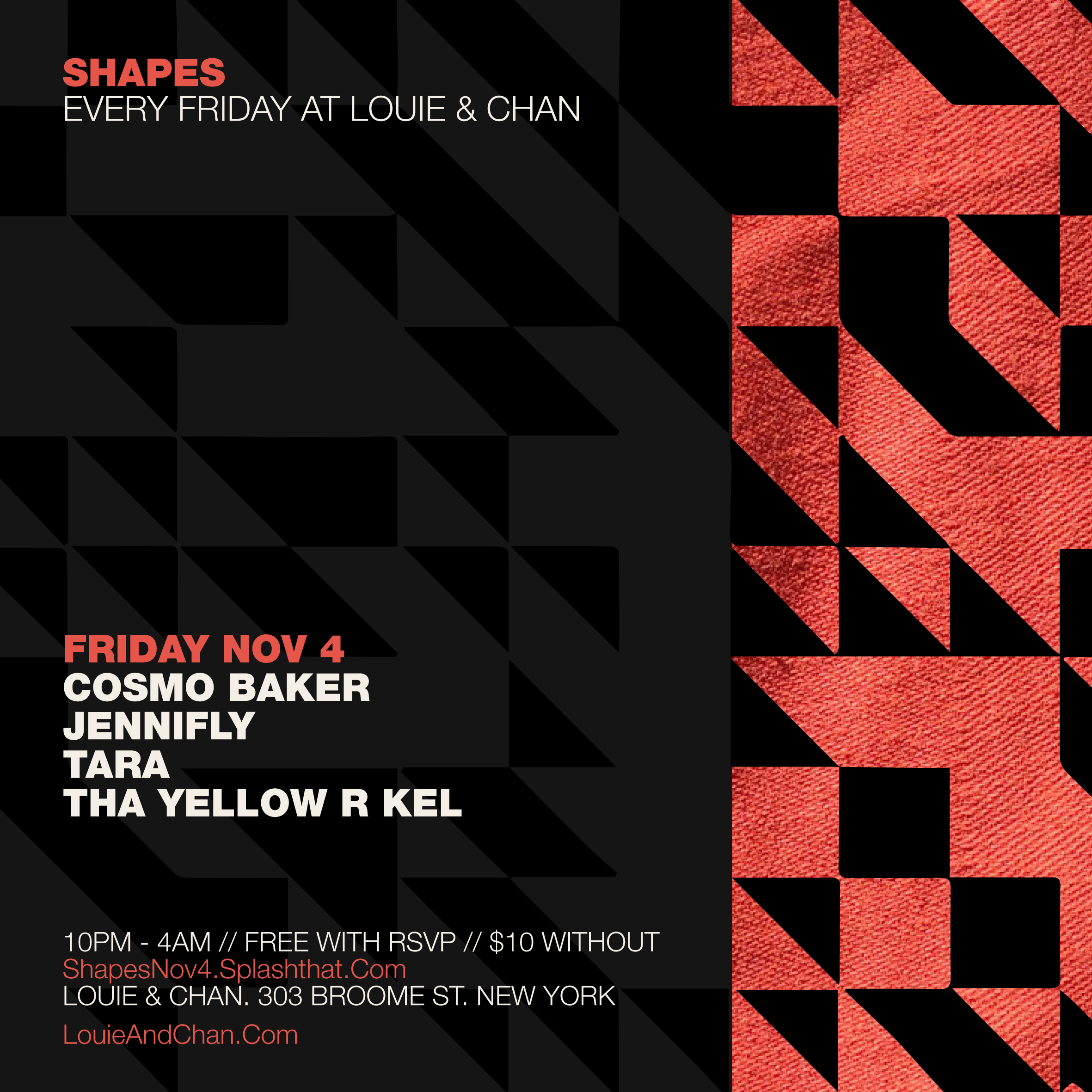 Friday April 7 – Shapes At Louie & Chan – New York, NY